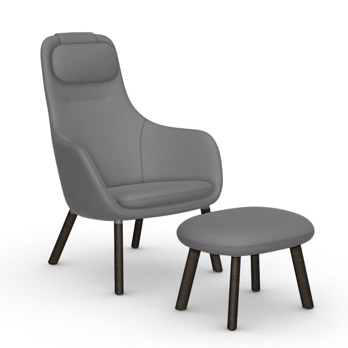VITRA fauteuil avec le coussin d'assise amovible HAL LOUNGE CHAIR & OTTOMAN en tissu Volo (Gris fer, base en chêne foncé avec vernis de protection - Tissu et bois)