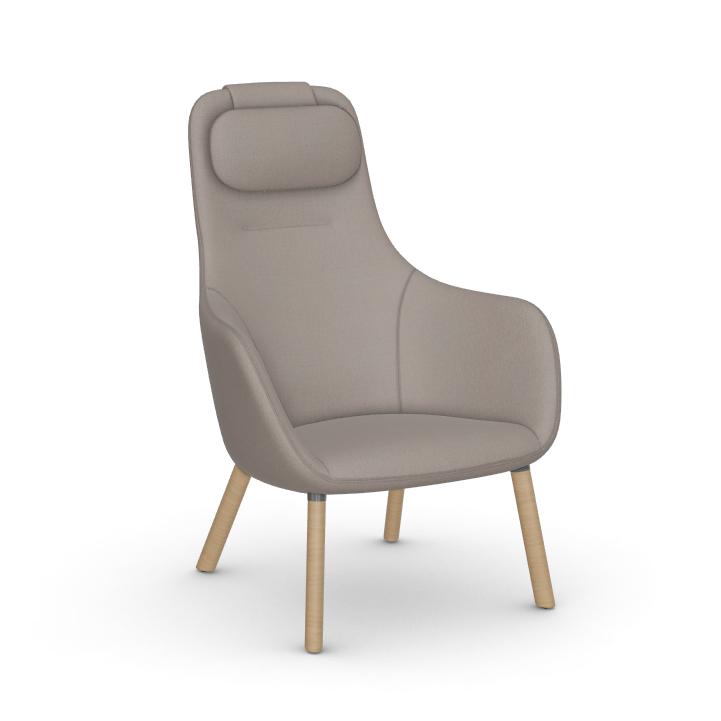 VITRA fauteuil HAL LOUNGE CHAIR en tissu Credo (Roche, base en chêne naturel avec vernis de protection - Tissu et bois)