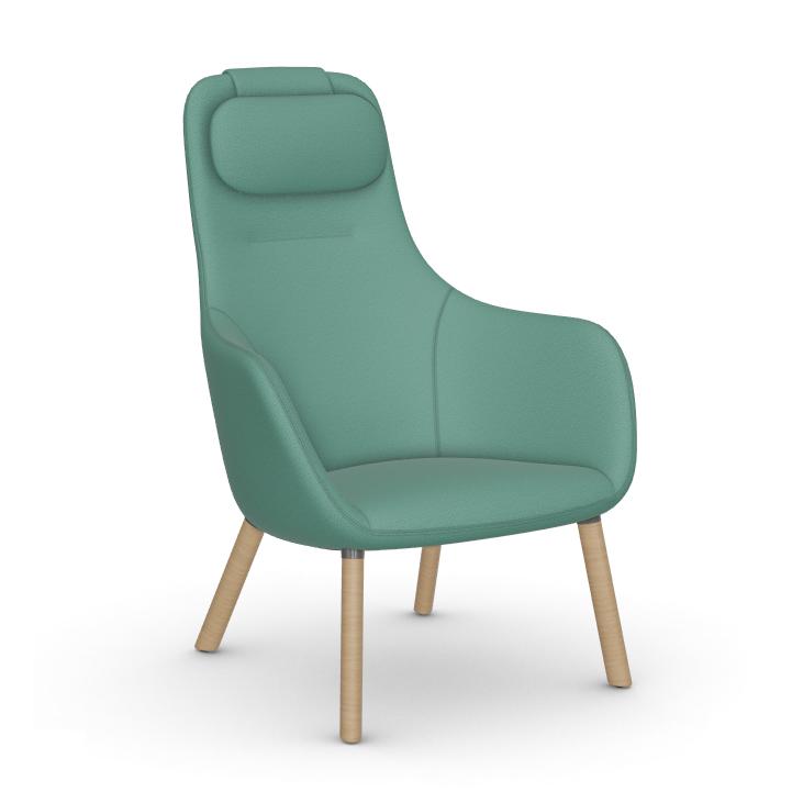 VITRA fauteuil HAL LOUNGE CHAIR en tissu Dumet (Bleu voilé/Vert éméraude, base en chêne naturel avec vernis de protection - Tissu et bois)