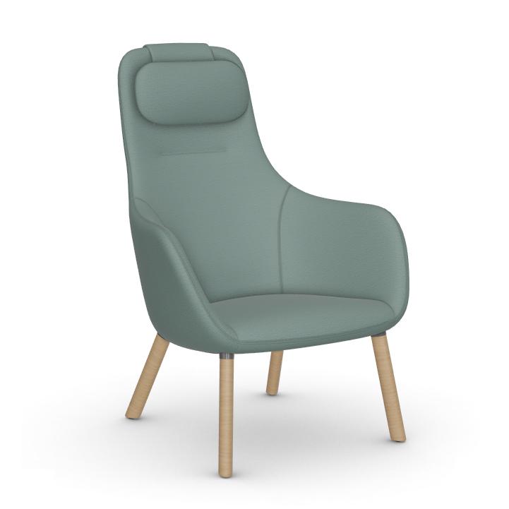 VITRA fauteuil HAL LOUNGE CHAIR en tissu Dumet (Sauge/bleu acier, base en chêne naturel avec vernis de protection - Tissu et bois)