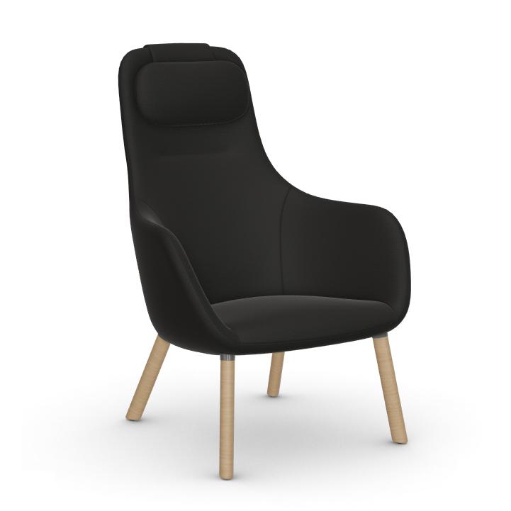 VITRA fauteuil HAL LOUNGE CHAIR en tissu Dumet (Charbon/Noir, base en chêne naturel avec vernis de protection - Tissu et bois)