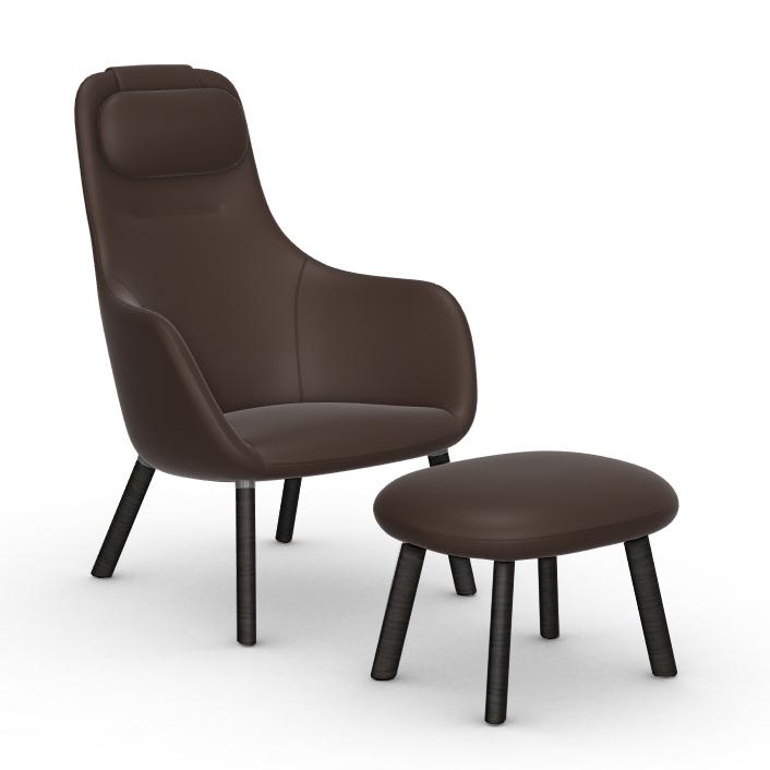 VITRA fauteuil HAL LOUNGE CHAIR & OTTOMAN en Cuir Premium (Marron, base en chêne foncé avec vernis de protection - Cuir et bois)