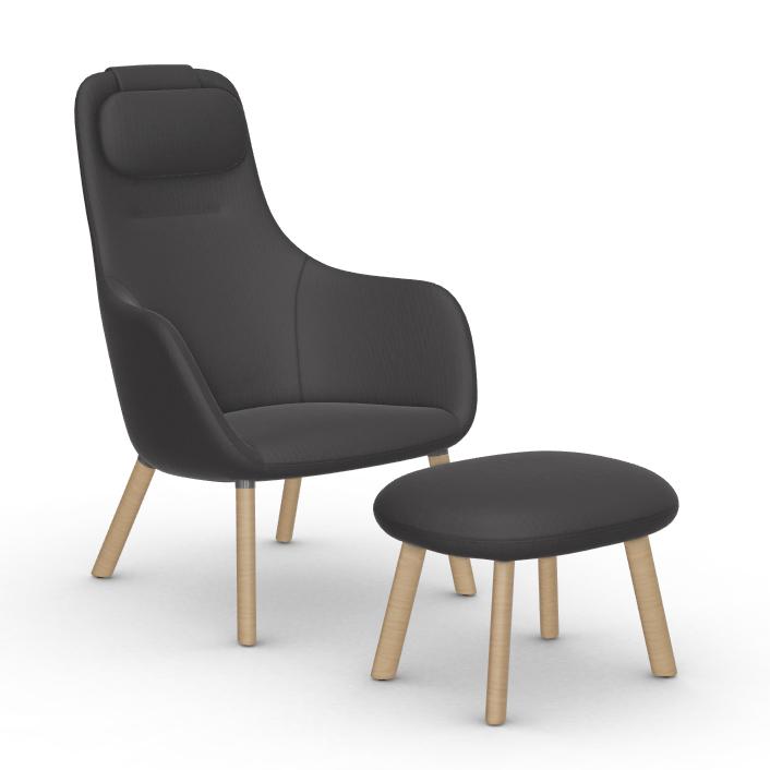 Chair est extrêmement polyvalent, convient à une utilisation à la maison ou dans les espaces publics et peut être utilisé seul, à deux ou en groupe. Cependant, un design minimaliste n‘est pas synonyme de neutralité fastidieuse : les produits de Jasper Morrison portent indubitablement sa griffe. La sobriété signifie plutôt que le design n‘obéit pas aux tendances à la mode mais qu‘il dégage au contraire une aura de sérénité et restera intemporel. La force du design apparaît toujours plus nettement au fil du temps, alors que d‘autres créations contemporaines qui attirent davantage l‘attention sont depuis longtemps tombées dans le déclin. Le fauteuil peut être assorti au HAL Ottoman, l‘utilisateur pouvant ainsi profiter entièrement de son confort en surélevant ses pieds. Les créations de Jasper Morrison ne se démarquent pas par un design remarquablement nouveau ou à la mode, mais incarnent plutôt la mise à jour et la perfection d‘une typologie familière comme le démontre le HAL Lounge Chair qui est la réinterprétation par Morrison du