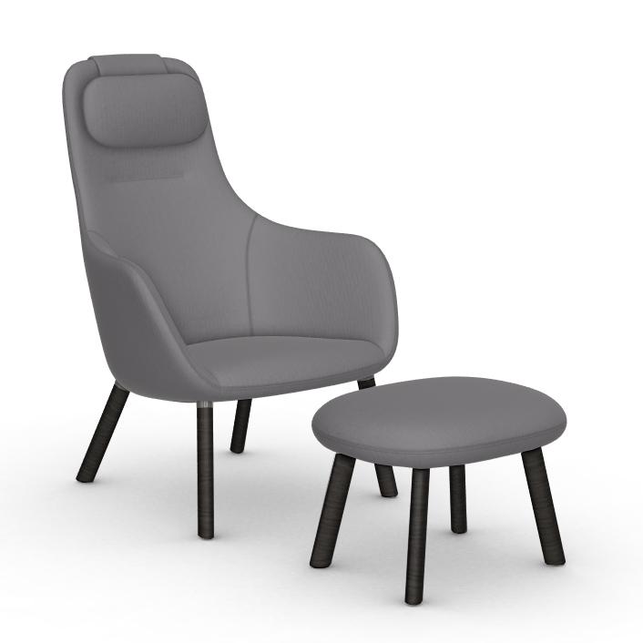 VITRA fauteuil HAL LOUNGE CHAIR & OTTOMAN en tissu Volo (Gris fer, base en chêne foncé avec vernis de protection - Tissu et bois)