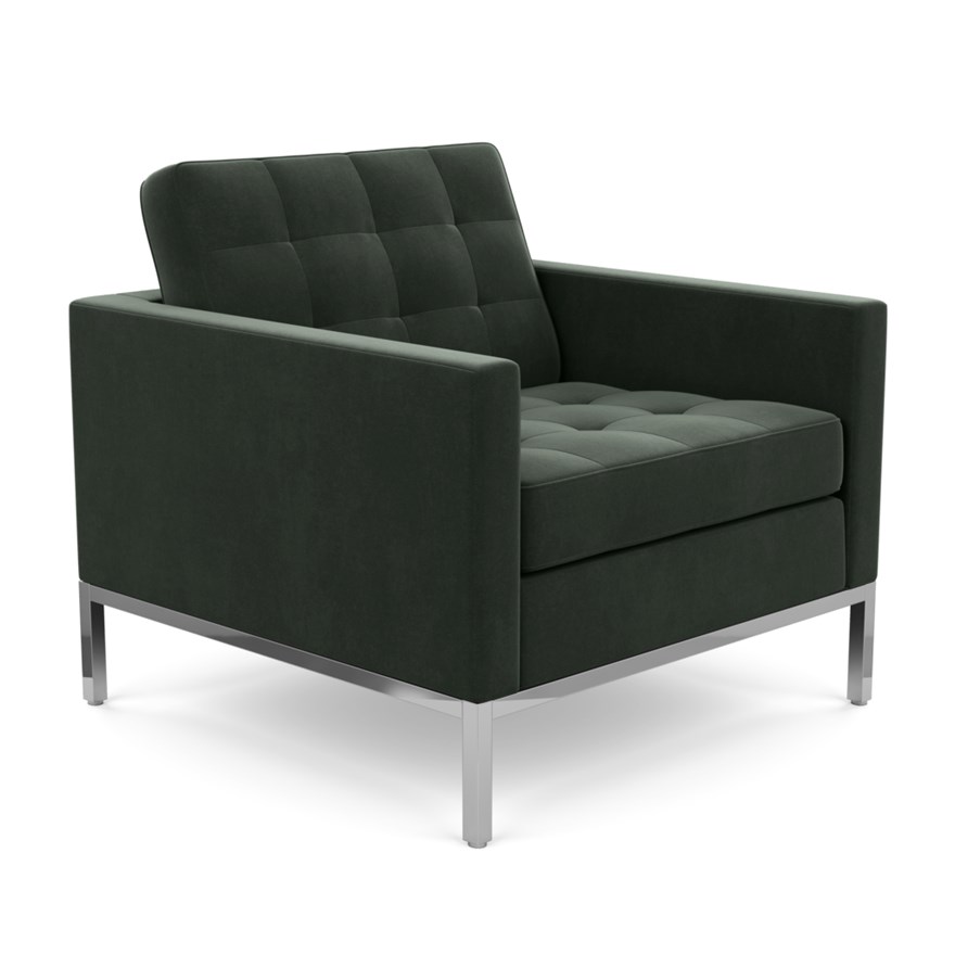 KNOLL fauteuil FLORENCE en tissu (Knoll Velvet Graphite - Revêtement Cat. B et structure en acier chromé)