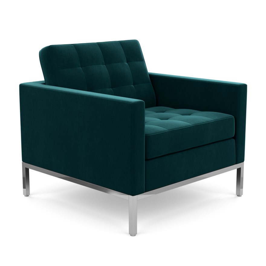 KNOLL fauteuil FLORENCE en tissu (Knoll Velvet Teal - Revêtement Cat. B et structure en acier chromé)