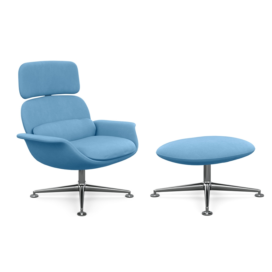 KNOLL fauteuil pivotant KN02 avec ottoman KN03 en tissu avec dossier haut inclinable (Ultrasuede Placid - Revêtement Cat. A et structure en aluminium poli)