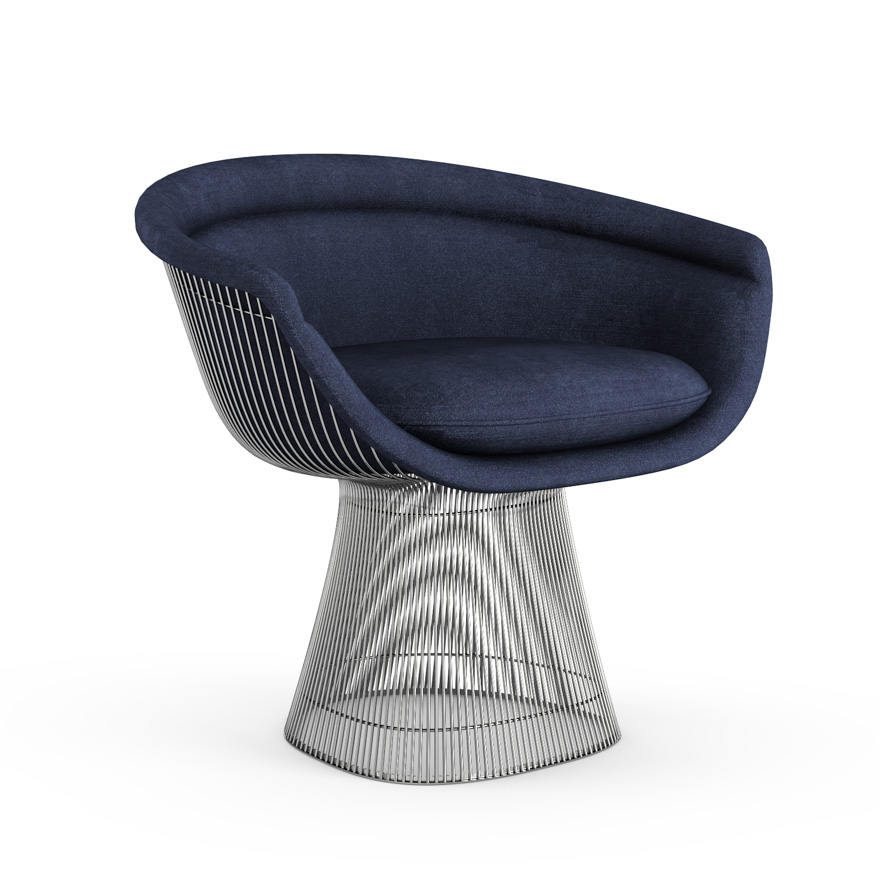 KNOLL fauteuil PLATNER (Blue / Nickel - Tissu Circa / Métal)