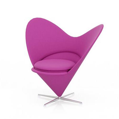 Un an après la création du fauteuil Cone Chair, Verner Panton a imaginé cette variante qui fut appelée Heart Cone Chair pour sa forme particulière en coeur. Le dossier amplement proéminent doit être interprété comme l'évolution moderne du classique fauteuil avec oreilles.
