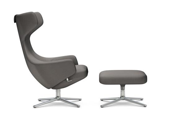 VITRA fauteuil pivotant GRAND REPOS & OTTOMAN (Sable / Anthracite H assise 45 cm - Tissu Dumet)