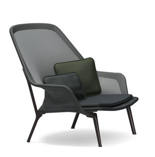 VITRA fauteuil SLOW CHAIR (Noir - Base aluminium revêtement noir / Revêtement tissu en maille)