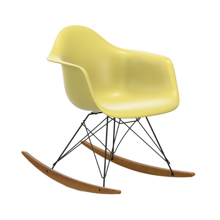 VITRA RAR fauteuil à bascule Eames Plastic Armchair base basic dark et érable doré (Citron RE - Polypropylène expansé, fil en acier verni et bois)