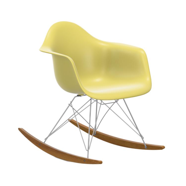 VITRA RAR fauteuil à bascule Eames Plastic Armchair base chromée et érable doré (Citron RE - Polypropylène, fil d'acier chromé et bois)