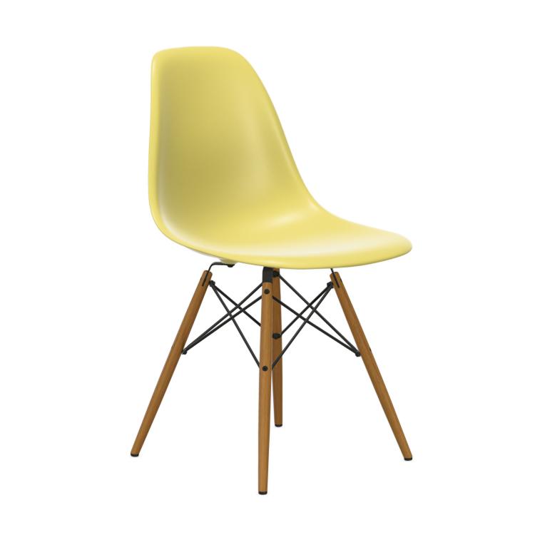 VITRA chaise Eames Plastic Side Chair DSW NOUVELLES DIMENSIONS (Citron RE - Polypropylène et érable doré)