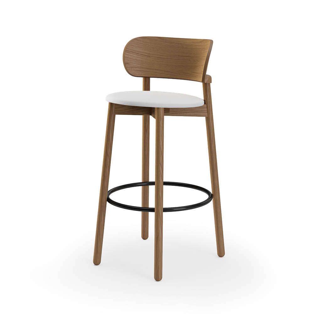 ALMA DESIGN tabouret avec coussin MINNIE H 74 cm (Frassino noce, tessuto Cat. D1 - Legno e nikel nero satinato)