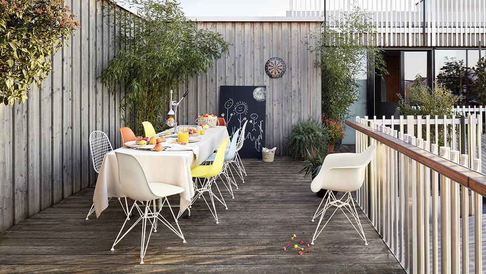 Le grand choix de piètements permet une multitude d'utilisations possibles dans une variété de contextes : de la salle à manger au bureau en passant par le jardin. Les diff érents coloris et versions de rembourrage off rent d'innombrables options permettant de composer des sièges répondant aux besoins les plus divers. En 2015, Vitra a adapté la géométrie et la hauteur de l'assise des Eames Plastic Chairs aux exigences d'aujourd'hui et a ajouté six nouvelles teintes à la gamme des couleurs.