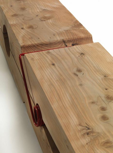 Le banc MOLLETTA MEDIUM, en jouant avec les mesures disproportionnées typique de l'art pop, il offre au bois du cèdre une interprétation iper-naturelle du matériel.