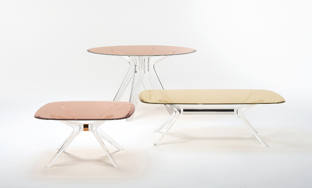 Blast est un hommage à la légèreté et à la pureté formelle. Elle reflète l’obsession de Starck de créer un maximum d’effet avec un minimum de matérialité, incarnée par la base en polycarbonate transparent de la table.