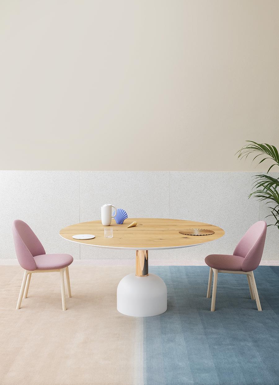 Illo Miniforms a la tête dans les nuages. Nous en avons exagéré les formes pour la rendre douce et accueillante. C’est une sculpture extravagante qui crée un équilibre parfait entre fonctionnalité et fantaisie. Disponible dans la version salle à manger, bistrot et salon. Sur commande, livraison en 8 semaines.