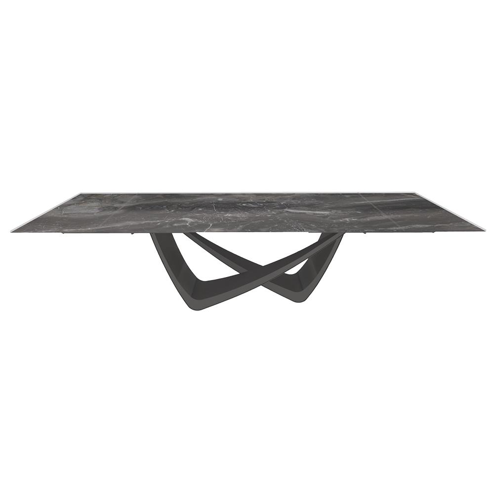 BONTEMPI table extensible rectangulaire avec structure anthracite BACH 53.85 290/240/190x100 cm (Art Glass Arabescato Imperiale Orobico - Struttura in acciaio laccato antracite e piano in cristallo temprato)