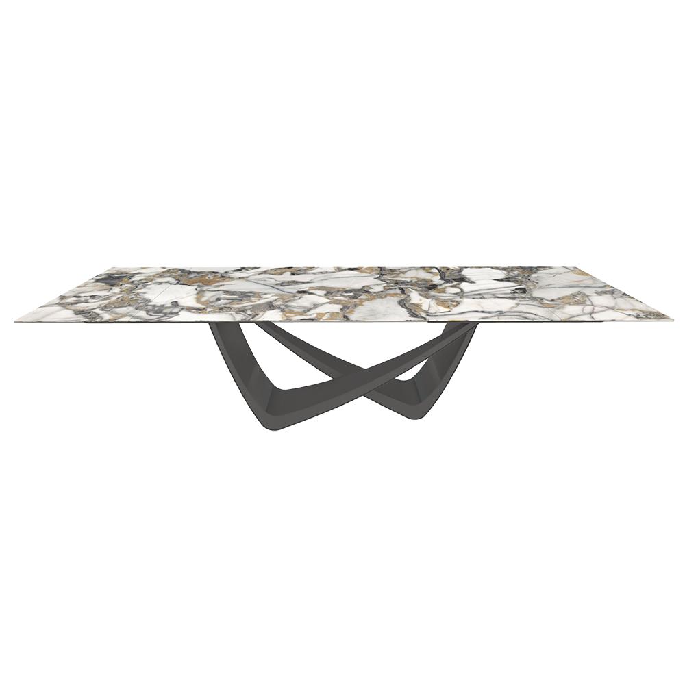 BONTEMPI table extensible rectangulaire avec structure anthracite BACH 53.85 290/240/190x100 cm (SuperMarmo Étoile Gold lucido - Struttura in acciaio laccato antracite e piano in ceramica e cristallo)