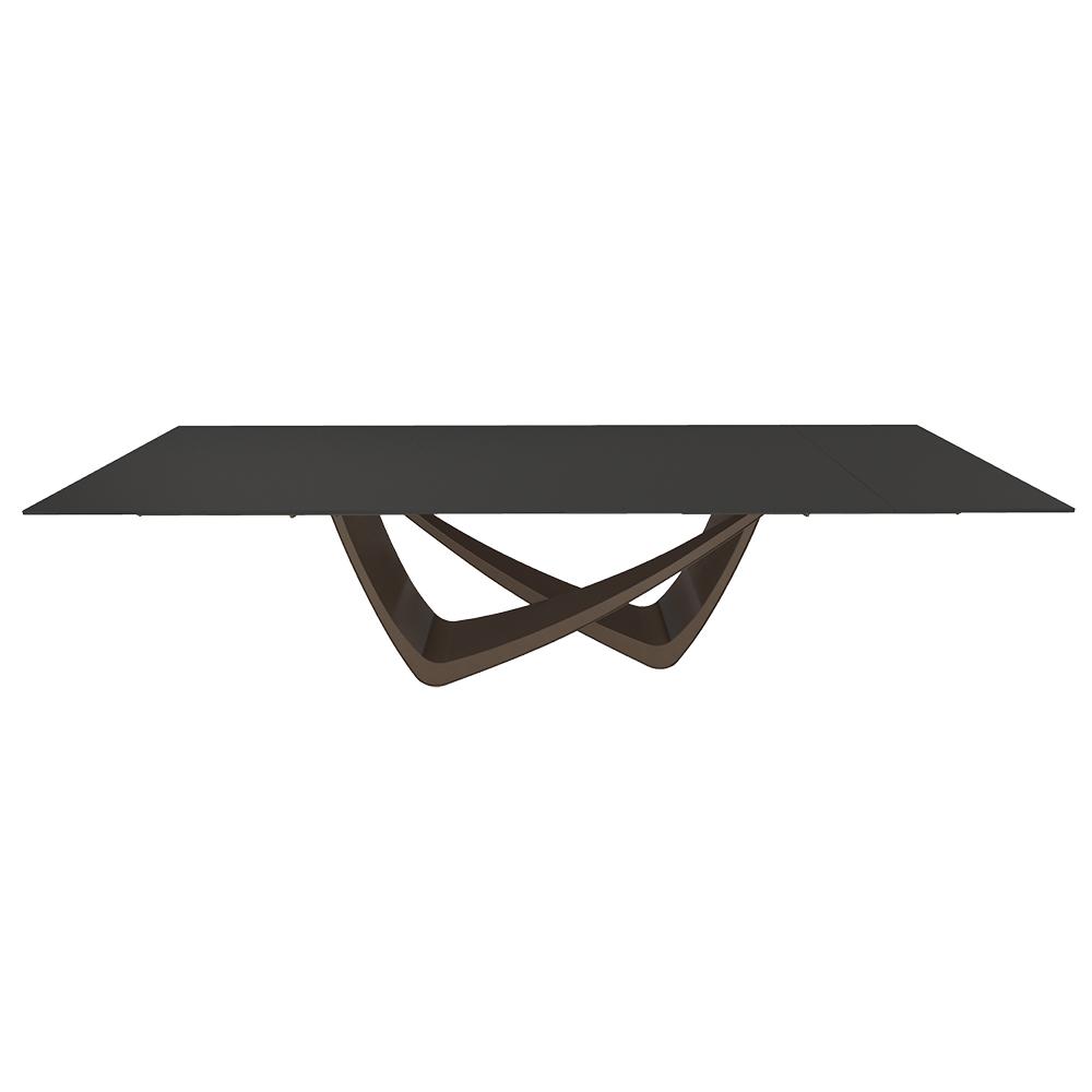 BONTEMPI table extensible rectangulaire avec structure laiton foncé BACH 53.85 290/240/190x100 cm (Anthracite mat - Struttura in acciaio laccato antracite e piano in cristallo velvet antigraffio)