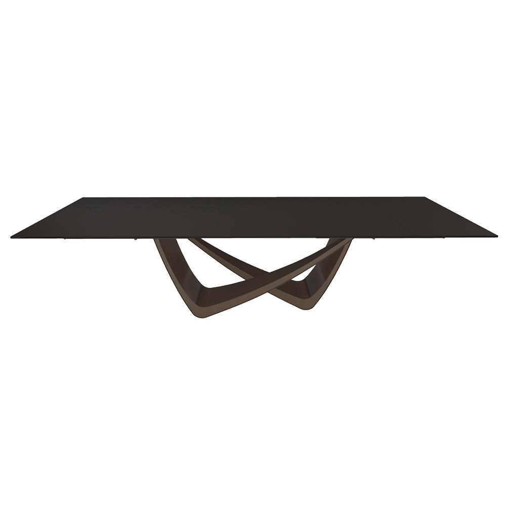BONTEMPI table extensible rectangulaire avec structure laiton foncé BACH 53.85 290/240/190x100 cm (Noir mat - Struttura in acciaio laccato antracite e piano in cristallo velvet antigraffio)
