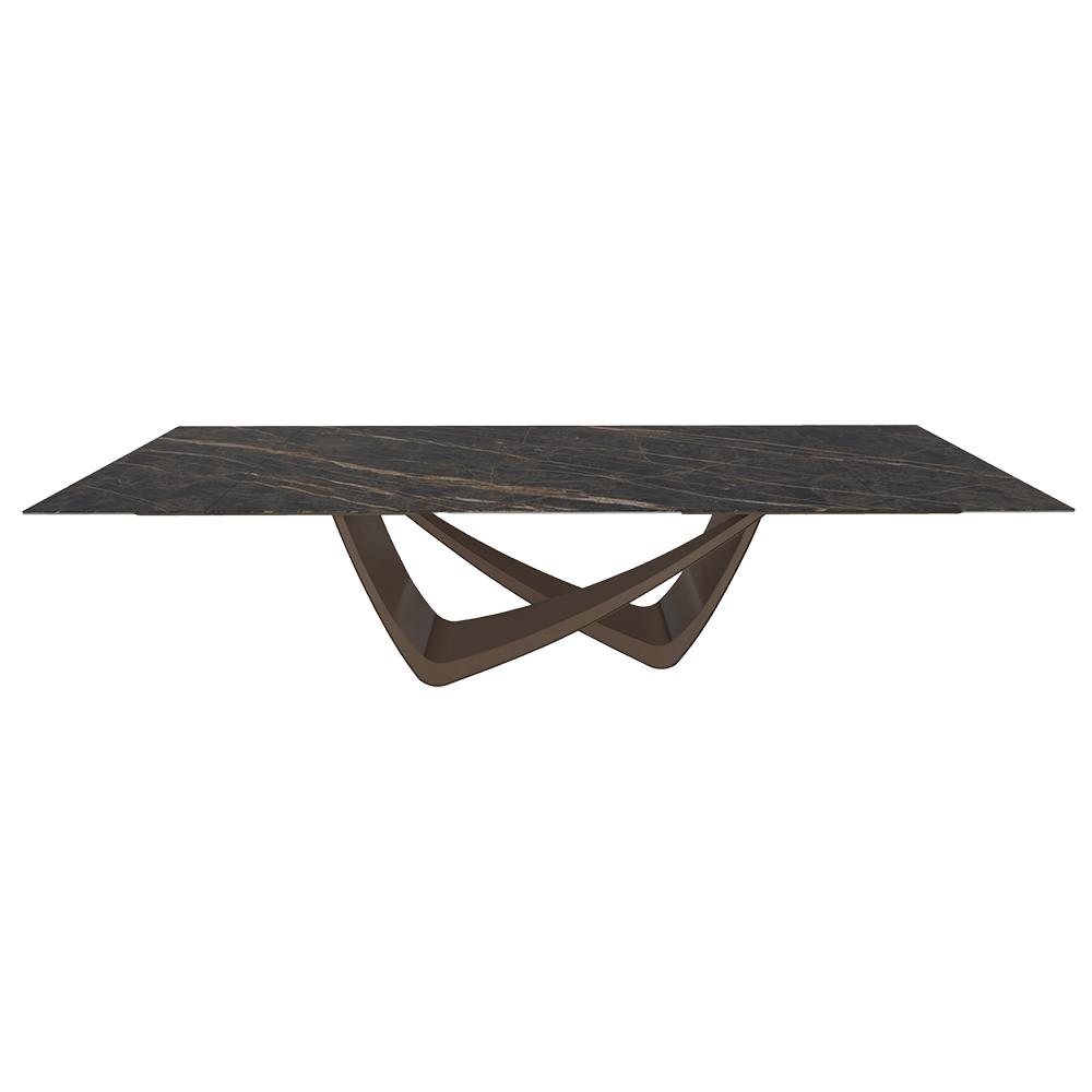 BONTEMPI table extensible rectangulaire avec structure laiton foncé BACH 53.85 290/240/190x100 cm (SuperMarmo Noir Desir opaco - Struttura in acciaio laccato antracite e piano in ceramica e cristallo)