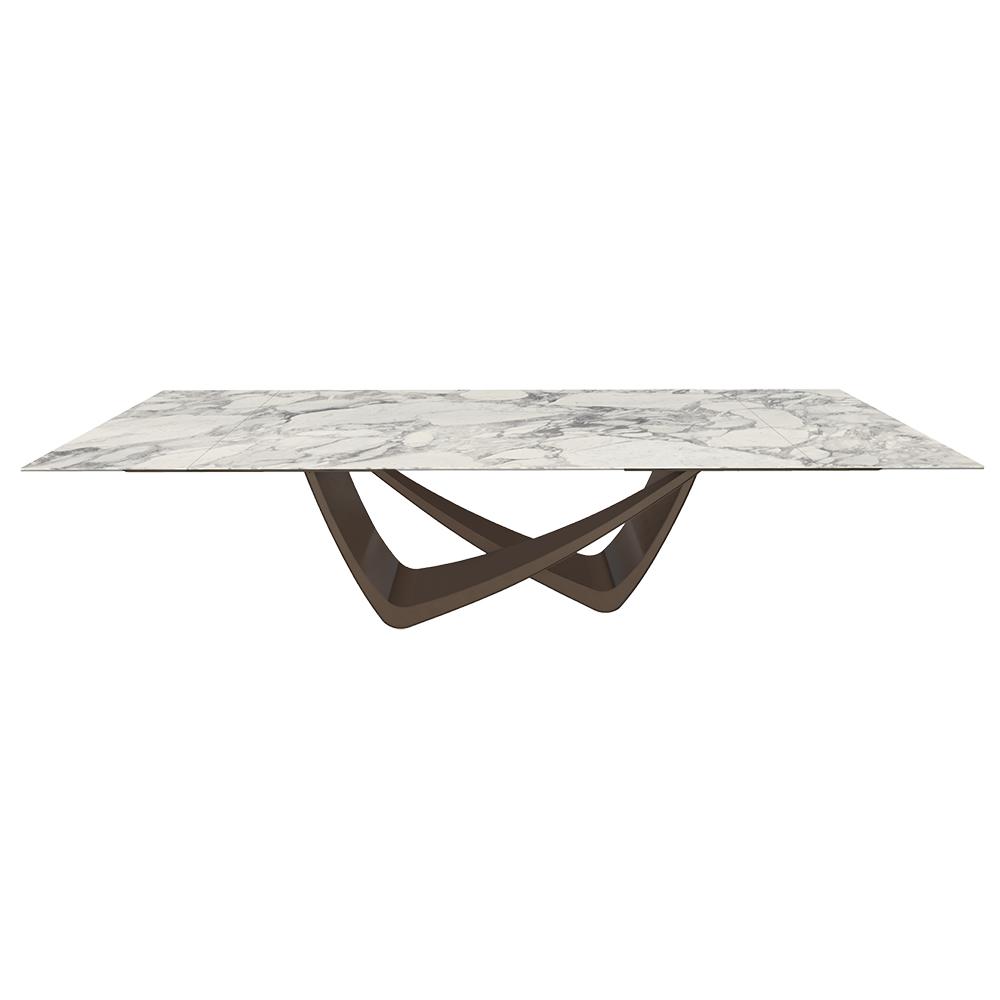 BONTEMPI table extensible rectangulaire avec structure laiton foncé BACH 53.85 290/240/190x100 cm (SuperMarmo Arabescato lucido lucido - Struttura in acciaio laccato antracite e piano in ceramica e cristallo)