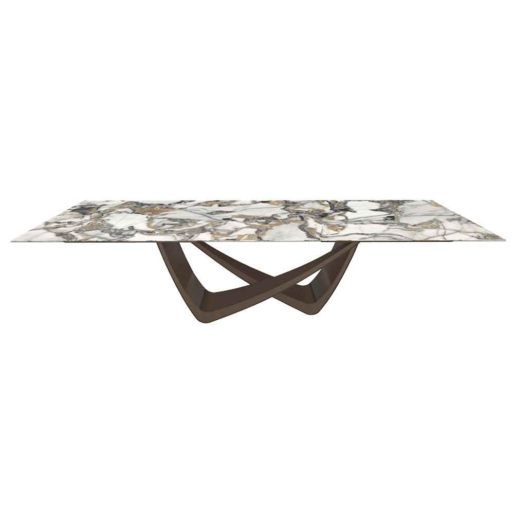 BONTEMPI table extensible rectangulaire avec structure laiton foncé BACH 53.85 290/240/190x100 cm (SuperMarmo Étoile Gold lucido - Struttura in acciaio laccato antracite e piano in ceramica e cristallo)