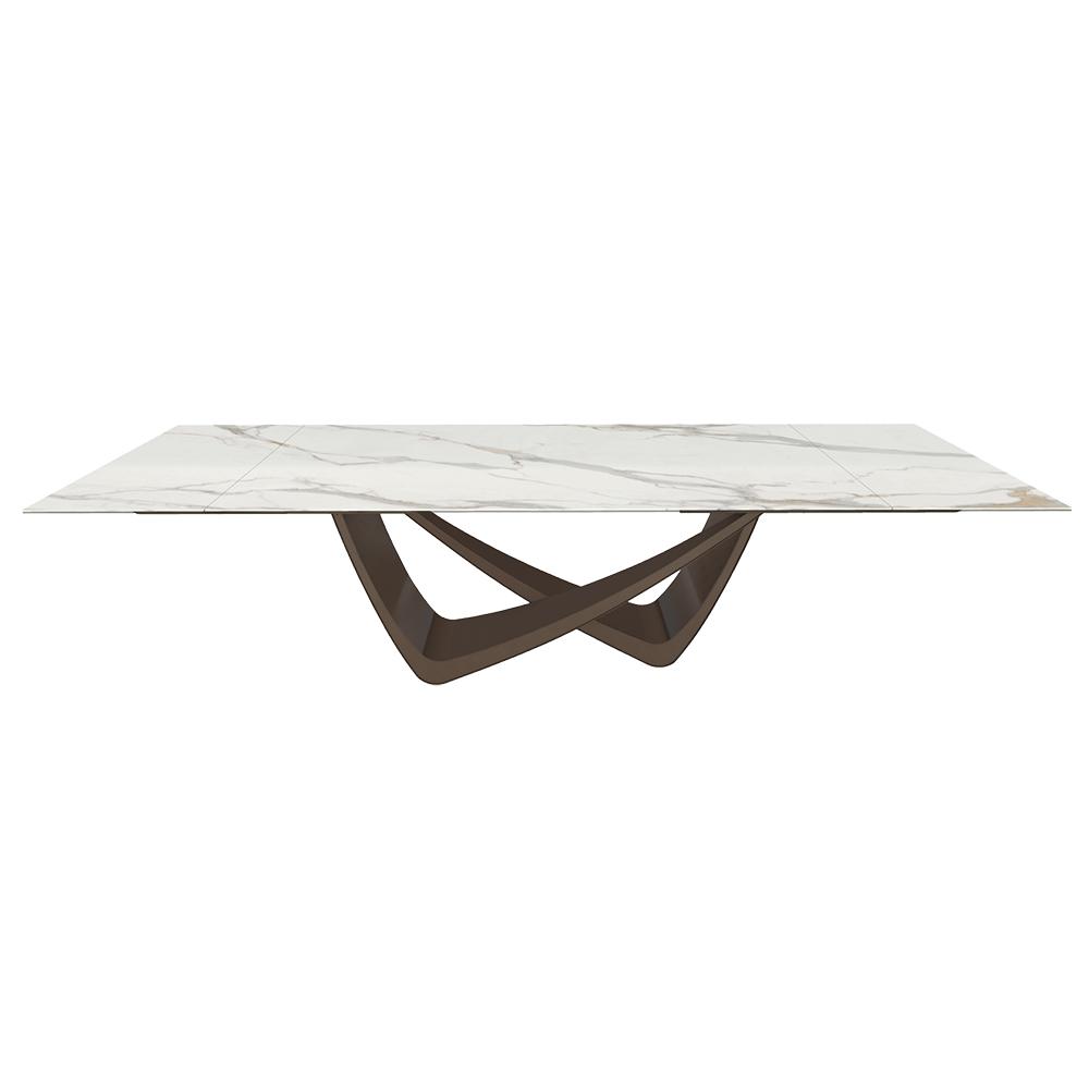 BONTEMPI table extensible rectangulaire avec structure laiton foncé BACH 53.85 290/240/190x100 cm (SuperMarmo Calacatta Supreme lucido - Struttura in acciaio laccato antracite e piano in ceramica e cristallo)