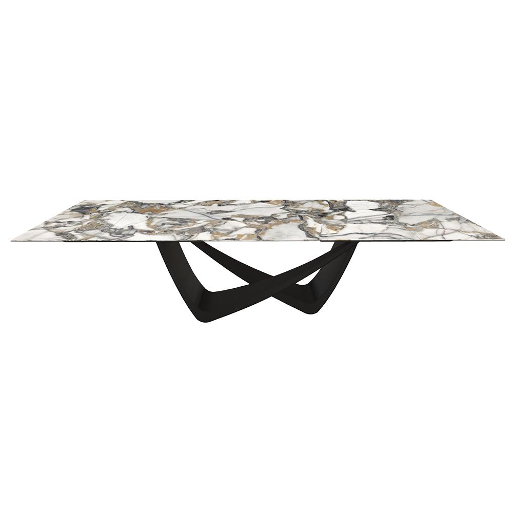 BONTEMPI table extensible rectangulaire avec structure noire matte BACH 53.85 290/240/190x100 cm (SuperMarmo Étoile Gold lucido - Struttura in acciaio laccato antracite e piano in ceramica e cristallo)