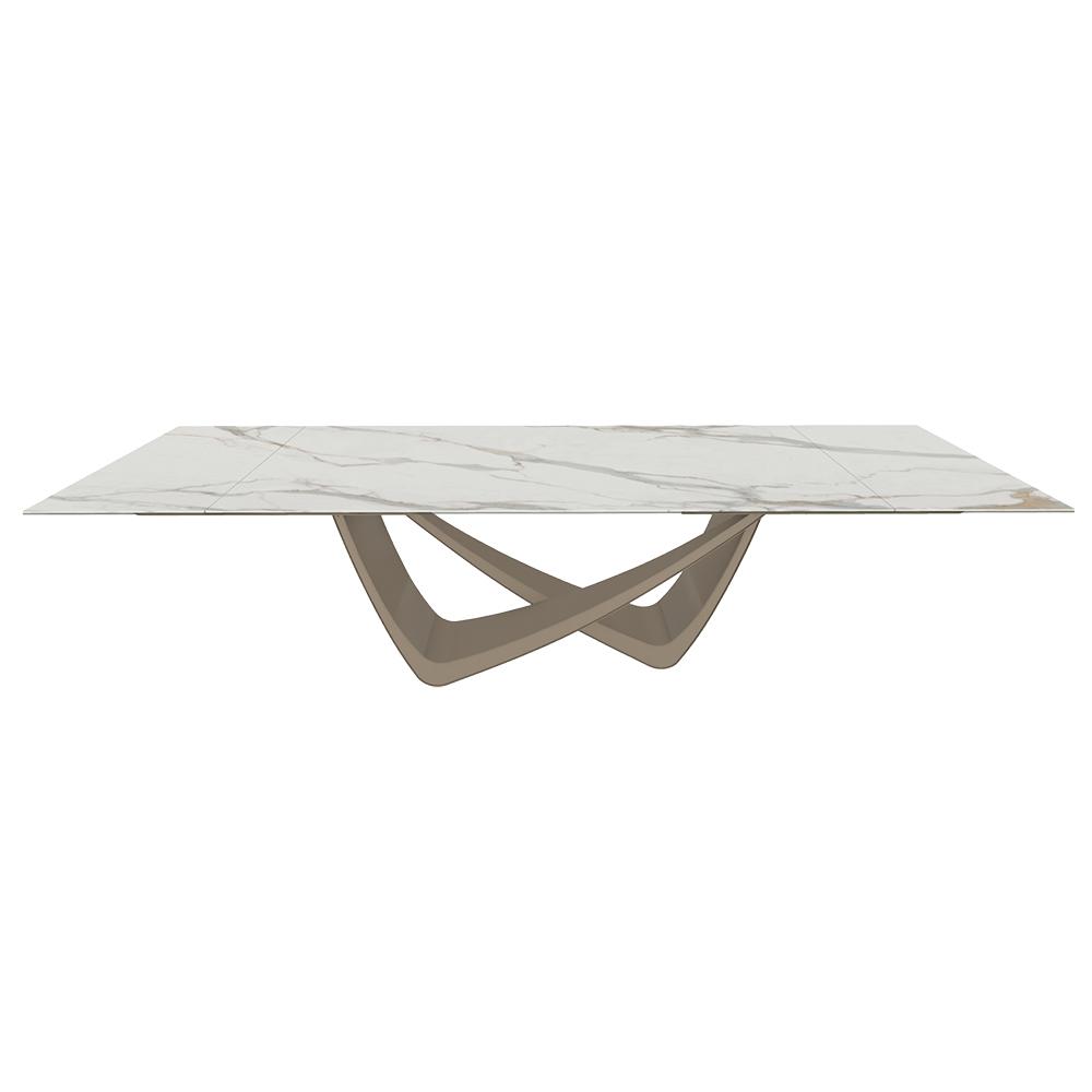 BONTEMPI table extensible rectangulaire avec structure sable BACH 53.85 290/240/190x100 cm (SuperMarmo Calacatta Supreme opaco - Struttura in acciaio laccato antracite e piano in ceramica e cristallo)