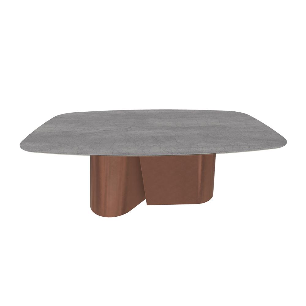 La base sculpturale complète le projet grâce à une structure en acier laqué disponible en de nombreuses variantes : sable, laiton foncé, anthracite, noir mat, argent naturel, or, or rose, laiton vieilli et noir profond brillant.