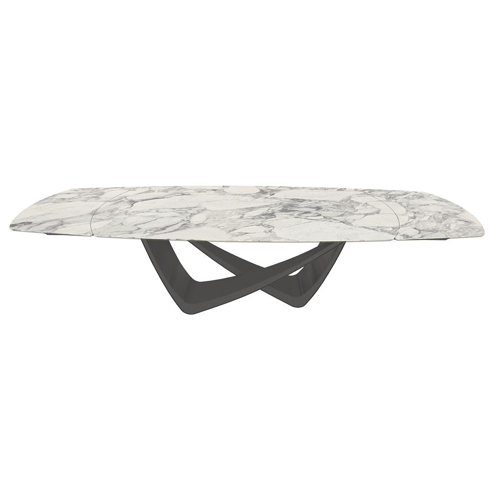 BONTEMPItable extensible en tonneau avec structure anthracite BACH 53.79 300/250/200x106 cm (SuperMarmo Arabescato lucido lucido - Struttura in acciaio laccato antracite e piano in ceramica e cristallo)