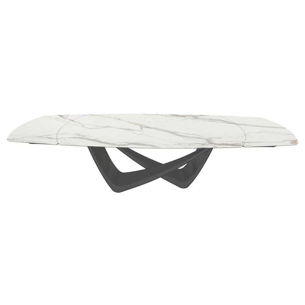 BONTEMPItable extensible en tonneau avec structure anthracite BACH 53.79 300/250/200x106 cm (SuperMarmo Calacatta Supreme lucido - Struttura in acciaio laccato antracite e piano in ceramica e cristallo)