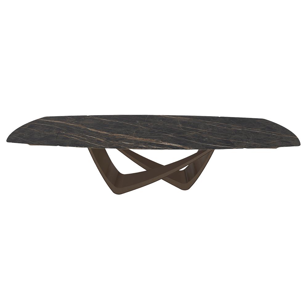 BONTEMPItable extensible en tonneau avec structure laiton foncé BACH 53.79 300/250/200x106 cm (SuperMarmo Noir Desir opaco - Struttura in acciaio laccato antracite e piano in ceramica e cristallo)