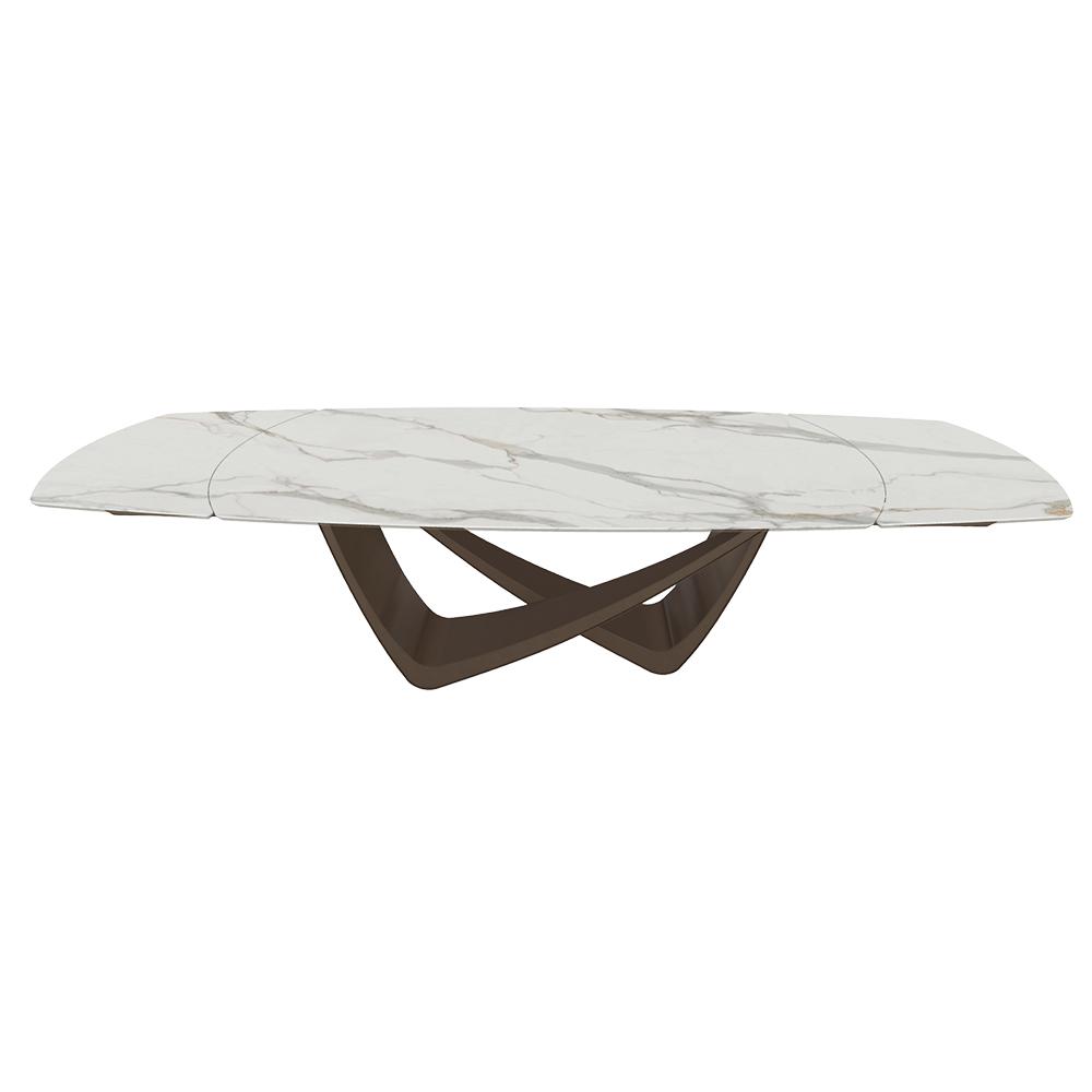 BONTEMPItable extensible en tonneau avec structure laiton foncé BACH 53.79 300/250/200x106 cm (SuperMarmo Calacatta Supreme opaco - Struttura in acciaio laccato antracite e piano in ceramica e cristallo)