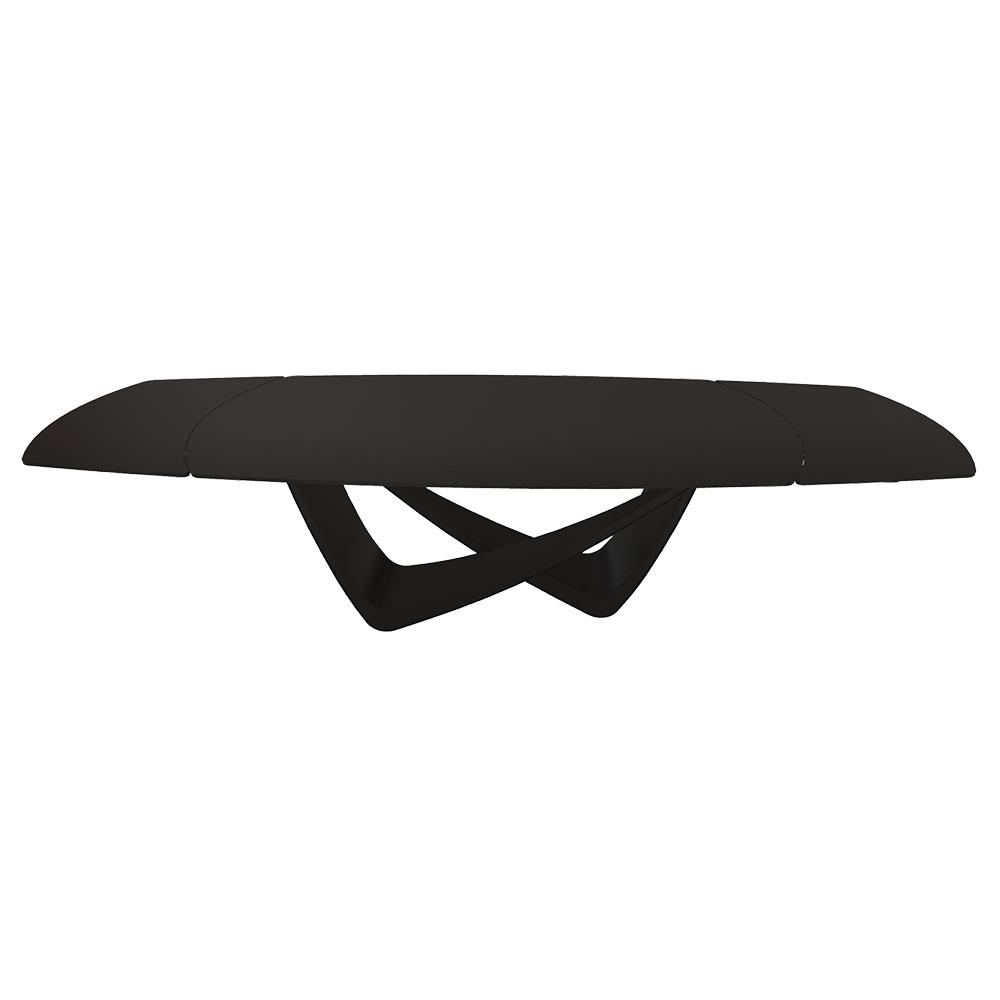BONTEMPItable extensible en tonneau avec structure noire matte BACH 53.79 300/250/200x106 cm (Noir mat - Struttura in acciaio laccato antracite e piano in cristallo velvet antigraffio)