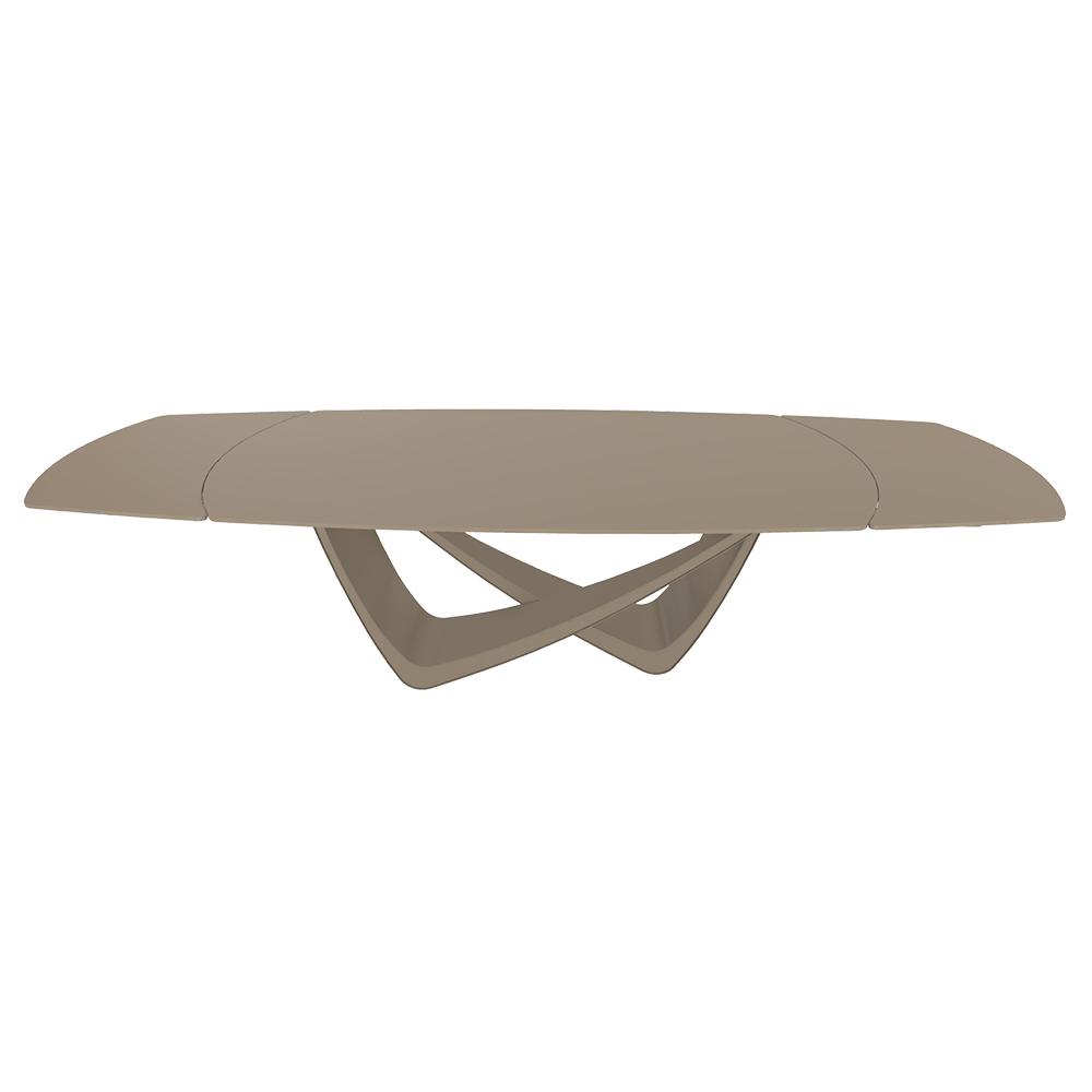 BONTEMPItable extensible en tonneau avec structure sable BACH 53.79 300/250/200x106 cm (Tortora Lucido - Struttura in acciaio laccato antracite e piano in cristallo)