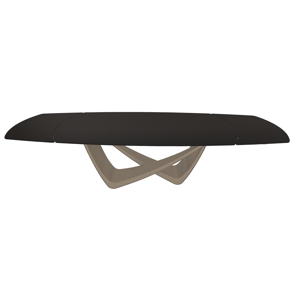 BONTEMPItable extensible en tonneau avec structure sable BACH 53.79 300/250/200x106 cm (Noir mat - Struttura in acciaio laccato antracite e piano in cristallo velvet antigraffio)