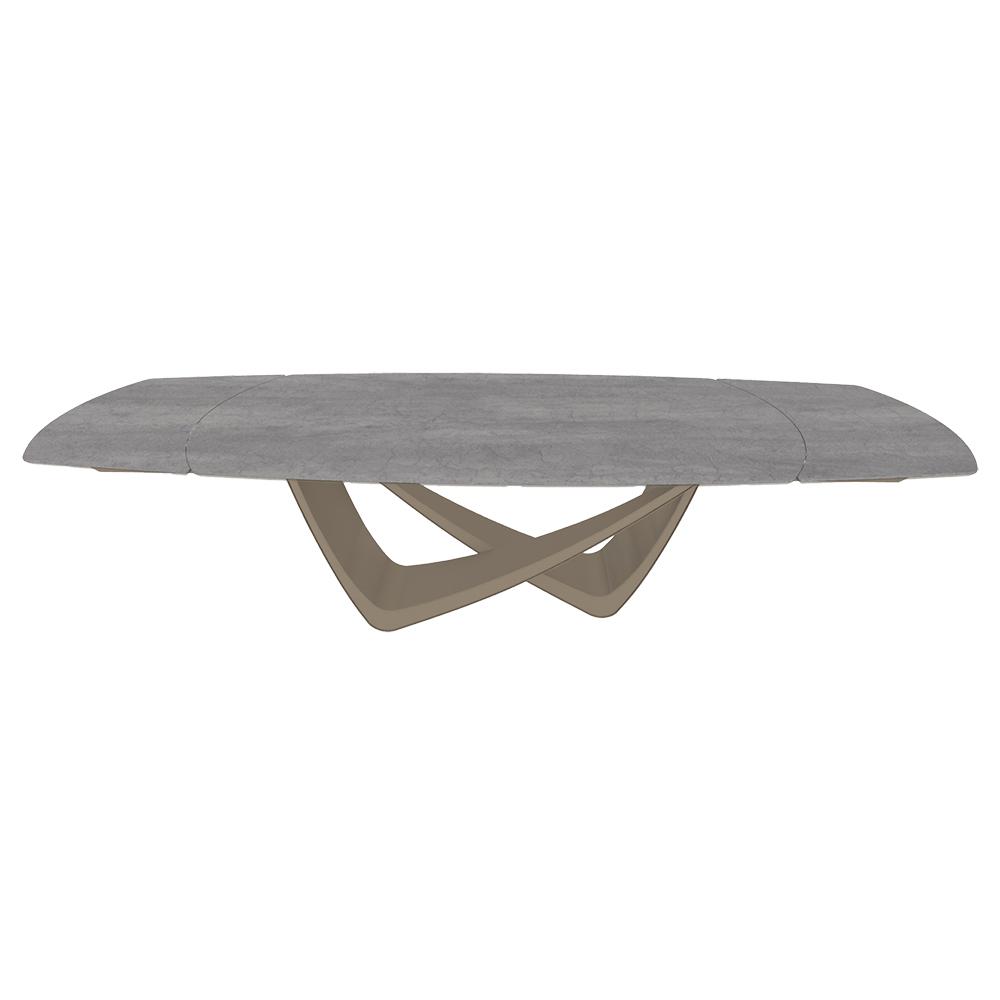BONTEMPItable extensible en tonneau avec structure sable BACH 53.79 300/250/200x106 cm (SuperCeramica grigio Savoia - Struttura in acciaio laccato antracite e piano in ceramica e cristallo)