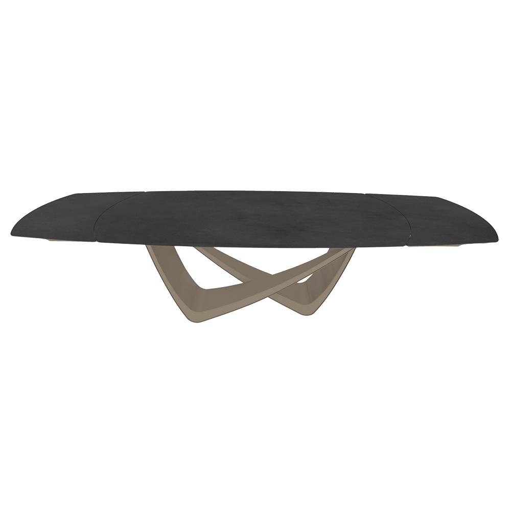 BONTEMPItable extensible en tonneau avec structure sable BACH 53.79 300/250/200x106 cm (SuperCeramica antracite - Struttura in acciaio laccato antracite e piano in ceramica e cristallo)