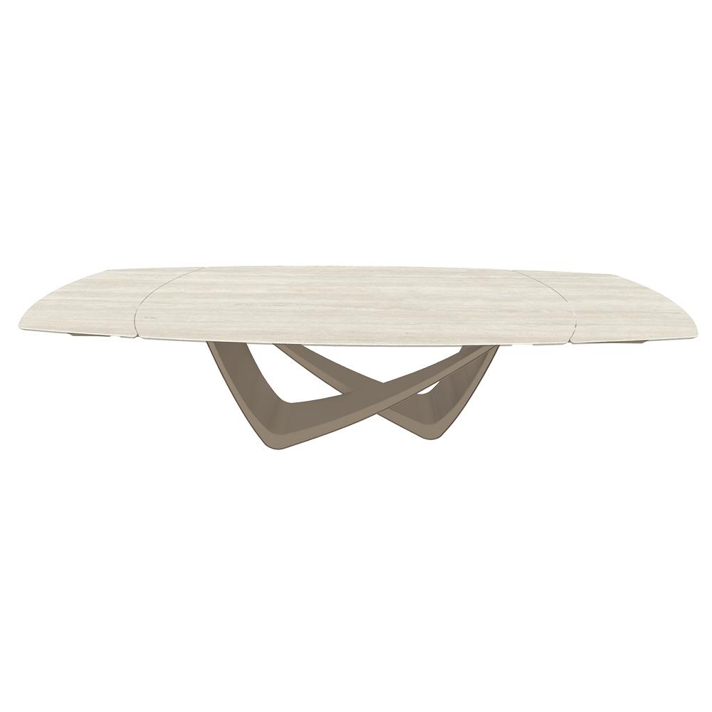 BONTEMPItable extensible en tonneau avec structure sable BACH 53.79 300/250/200x106 cm (SuperMarmo Travertino bianco pietra opaco - Struttura in acciaio laccato antracite e piano in ceramica e cristallo)