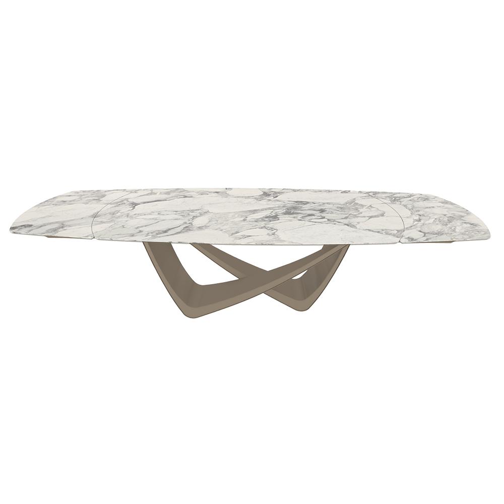 BONTEMPItable extensible en tonneau avec structure sable BACH 53.79 300/250/200x106 cm (SuperMarmo Arabescato lucido lucido - Struttura in acciaio laccato antracite e piano in ceramica e cristallo)