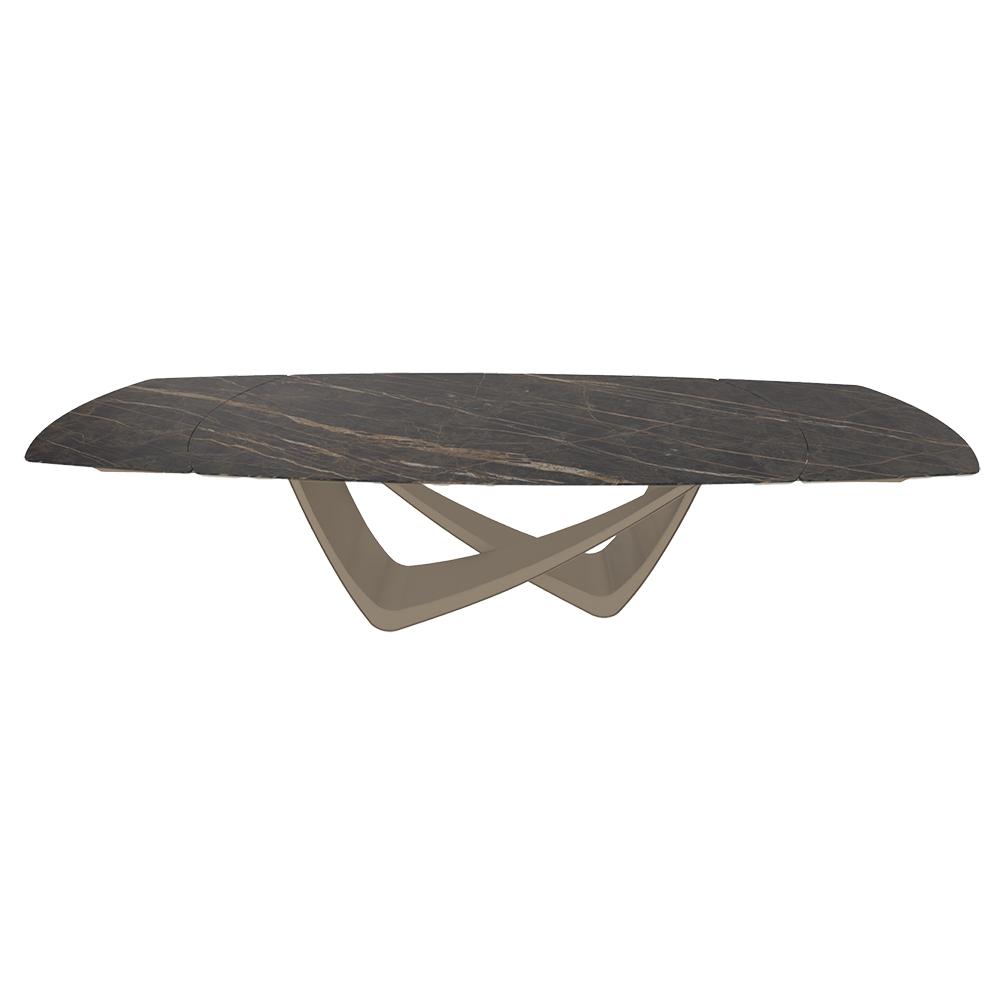 BONTEMPItable extensible en tonneau avec structure sable BACH 53.79 300/250/200x106 cm (SuperMarmo Noir Desir lucido - Struttura in acciaio laccato antracite e piano in ceramica e cristallo)