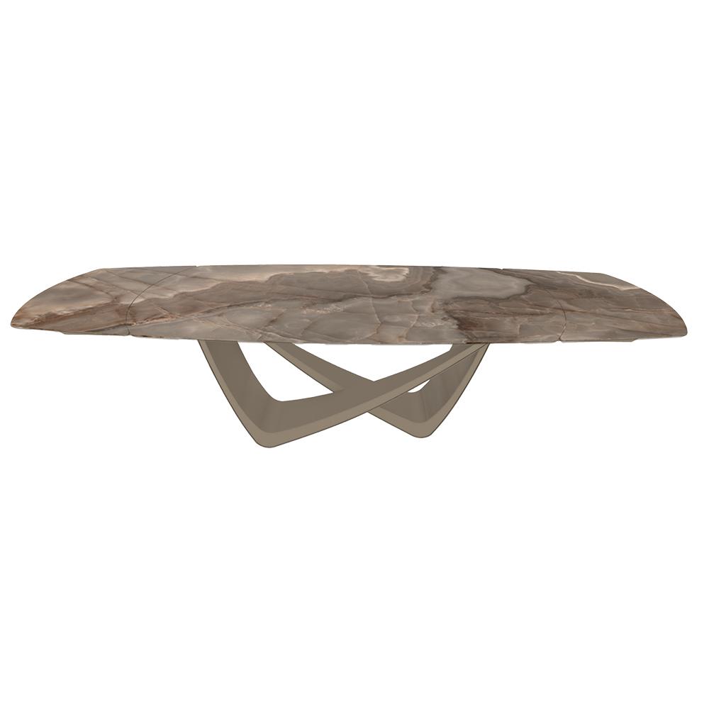 BONTEMPItable extensible en tonneau avec structure sable BACH 53.79 300/250/200x106 cm (SuperMarmo Choco lucido - Struttura in acciaio laccato antracite e piano in ceramica e cristallo)