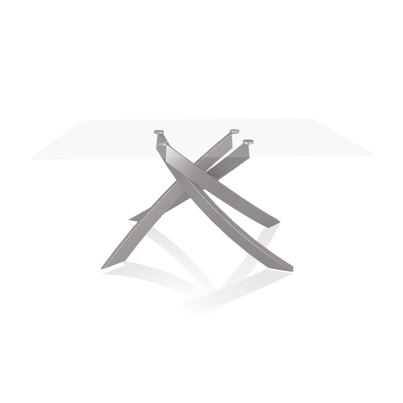 BONTEMPI table avec structure gris clair ARTISTICO 20.13 160x90 cm (Transparent extra-clair - Plateau en verre et structure en acier laqué gris clair)
