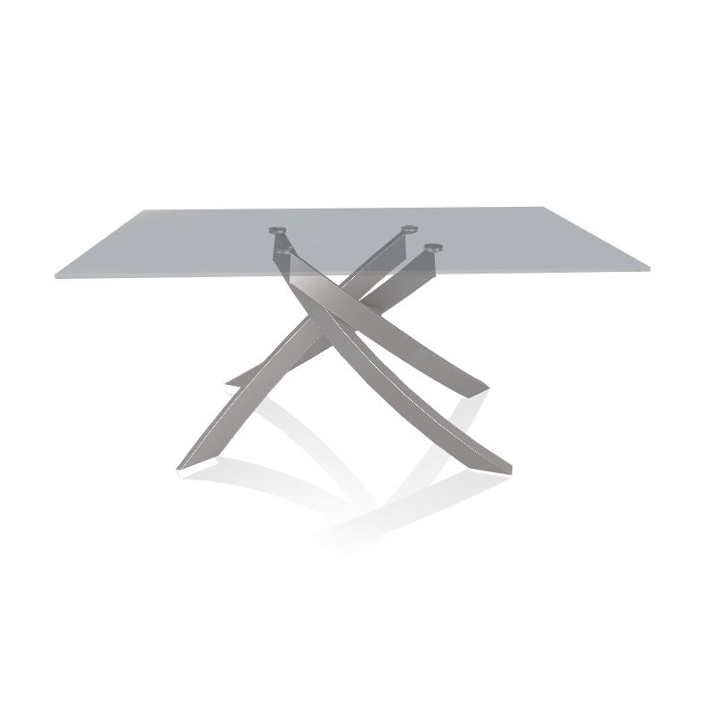 BONTEMPI table avec structure gris clair ARTISTICO 20.13 160x90 cm (Transparent fumé - Plateau en verre et structure en acier laqué gris clair)