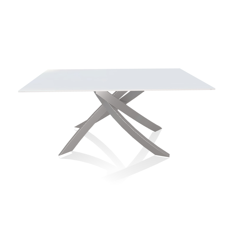 BONTEMPI table avec structure gris clair ARTISTICO 20.13 160x90 cm (Extrawhite brillant - Plateau en verre et structure en acier laqué gris clair)